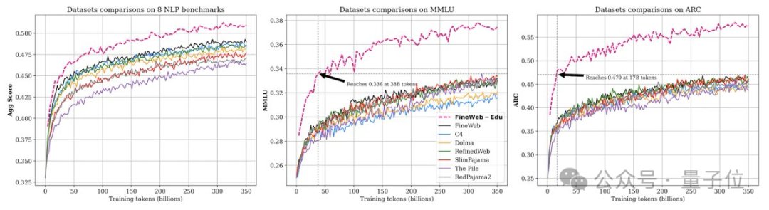 具体来说是使用Llama3-70B-Struct 生成的标注开发了一个分类器,仅保留FineWeb数据集中最具教育意义的网页。
