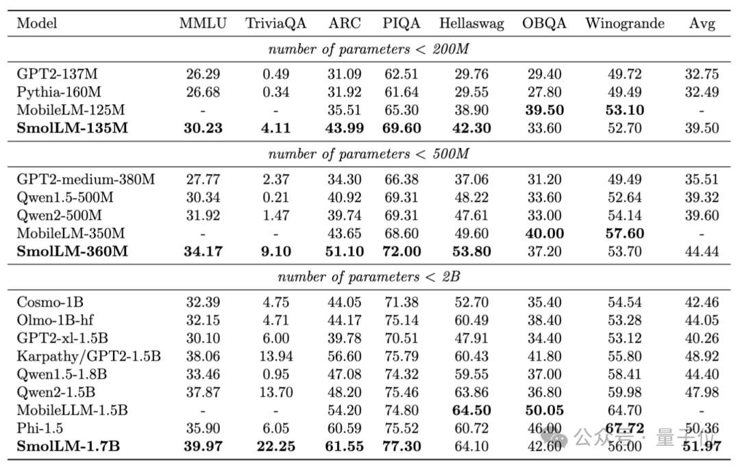 在Elie的帮助下,团队将模型尺寸从1.7B开始下降到360M甚至170M,也就是对标经典模型GPT-1、GPT-2和BERT。