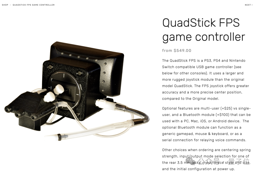 使用一种叫QuadStick的设备,几根吸管当“摇杆”和“按钮”,从移动切换到瞄准要松开吸管咬住另一根。