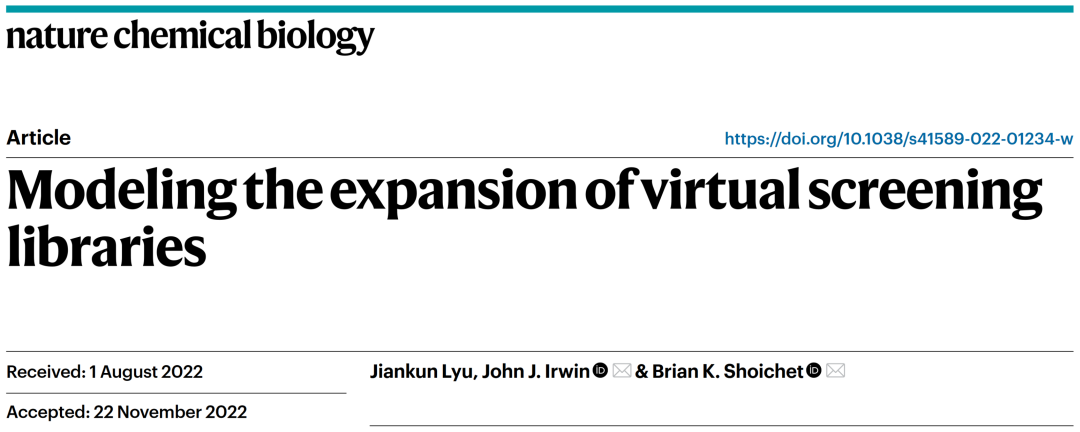 Lyu, J., Irwin, J. J., & Shoichet, B. K. (2023). Modeling the expansion of virtual screening libraries. Nature chemical biology, 19(6), 712-718.