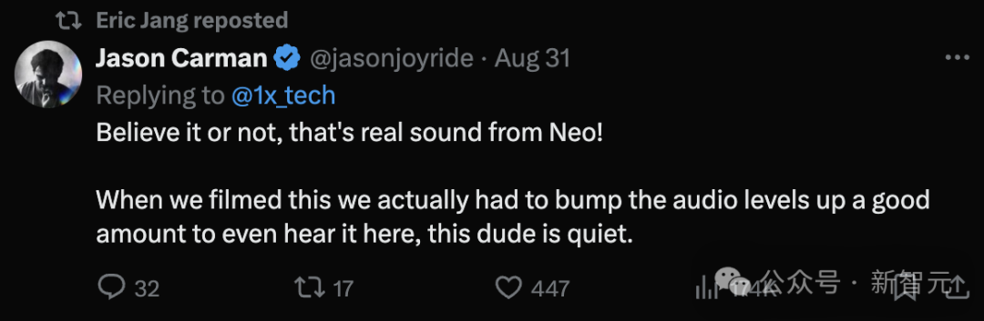 对于Eric Jang所说的「超安静」,试用者和Jason Carman都表示:确实如此,执行器简直太安静了!
