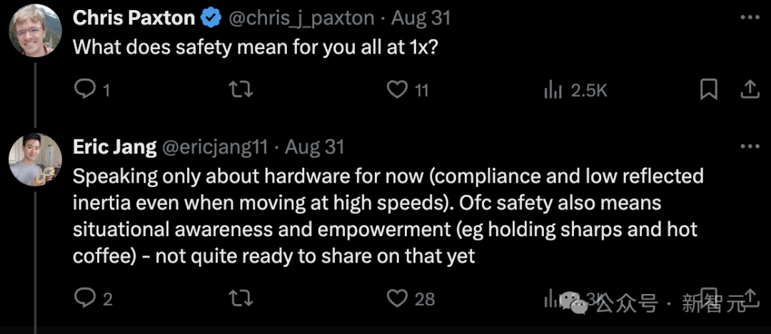 针对1X两款机器人都主打的「安全性」,也有人直接质疑:你们所说的「安全性」是什么意思?