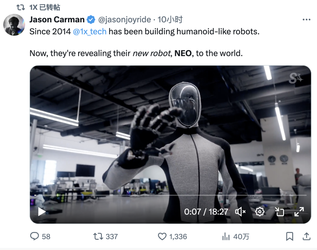 来自挪威的机器人公司1X Technologies,发布了全新一代家务机器人NEO的原型。