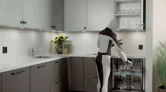 NEO可以完成复杂的操作,它还能够整理橱柜中的高脚杯,动作十分平稳。