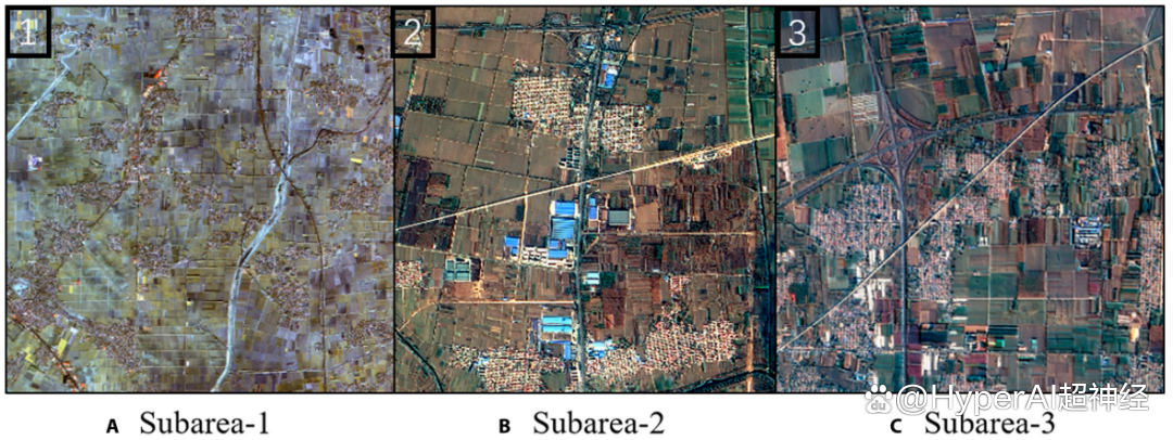 该研究选择在山东省的费县和郓城县进行,研究区域面积约为 2,567 平方公里,具有多种土地覆盖类型。为确保景观多样性,该研究确定了 3 个子区域作为实验地点,这些区域都是农田、水体、道路和建筑物的混合体,并且区域内景观的异质性也表现出明显的区别。