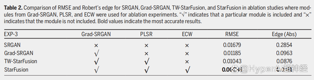 研究结果:StarFusion 表现最佳,Grad-SRGAN 贡献度最大