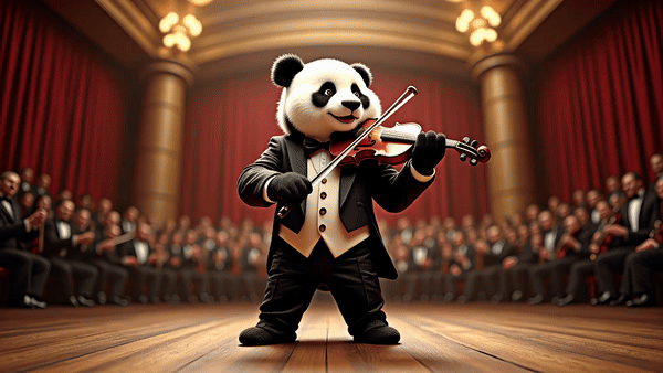 比如一只熊猫优雅地拉着小提琴,琴声悠扬,如梦似幻。