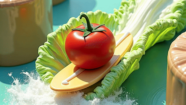 甚至番茄都能在生菜上冲浪了。