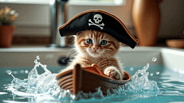 再或者让橘猫化身为海盗,在卧室的浴缸里探索着未知的海域。