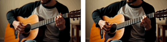 比如输入以下图片,并给定指令:让男孩熟练地弹奏起吉他