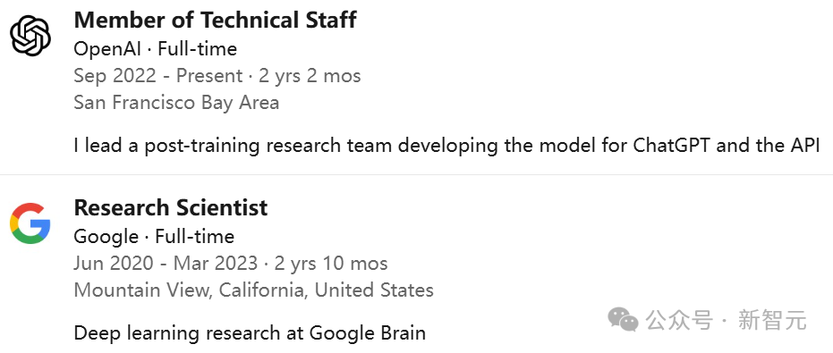 就在刚刚,又一位元老级人物官宣离职OpenAI了。o1推理模型贡献者之一Luke Metz发文称,「我即将离开OpenAI,结束这段超过两年的奇妙旅程」。与此同时,Information爆料称,此前出走的后训练团队负责人Barret Zoph,现有了新的继任者——William (Liam) Fedus。值得一提的是,今天的两位主角此前都曾是谷歌的研究员;在来到OpenAI之后,共同参与了ChatGPT、GPT-4和o1的研发。