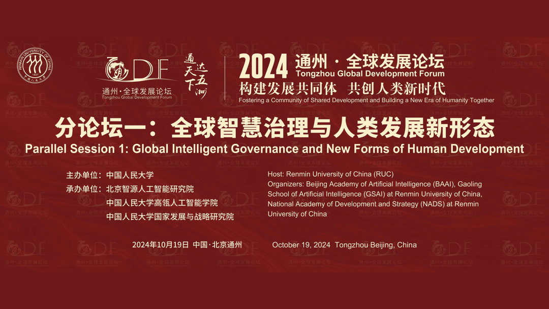 10月19日周六下午14点,北京智源人工智能研究院联合中国人民大学高瓴人工智能学院、中国人民大学国家发展与战略研究院,将在北京海淀区智源大厦举办“2024通州·全球发展论坛”分论坛——全球智慧治理与人类发展新形态,共绘新时代智慧治理蓝图。