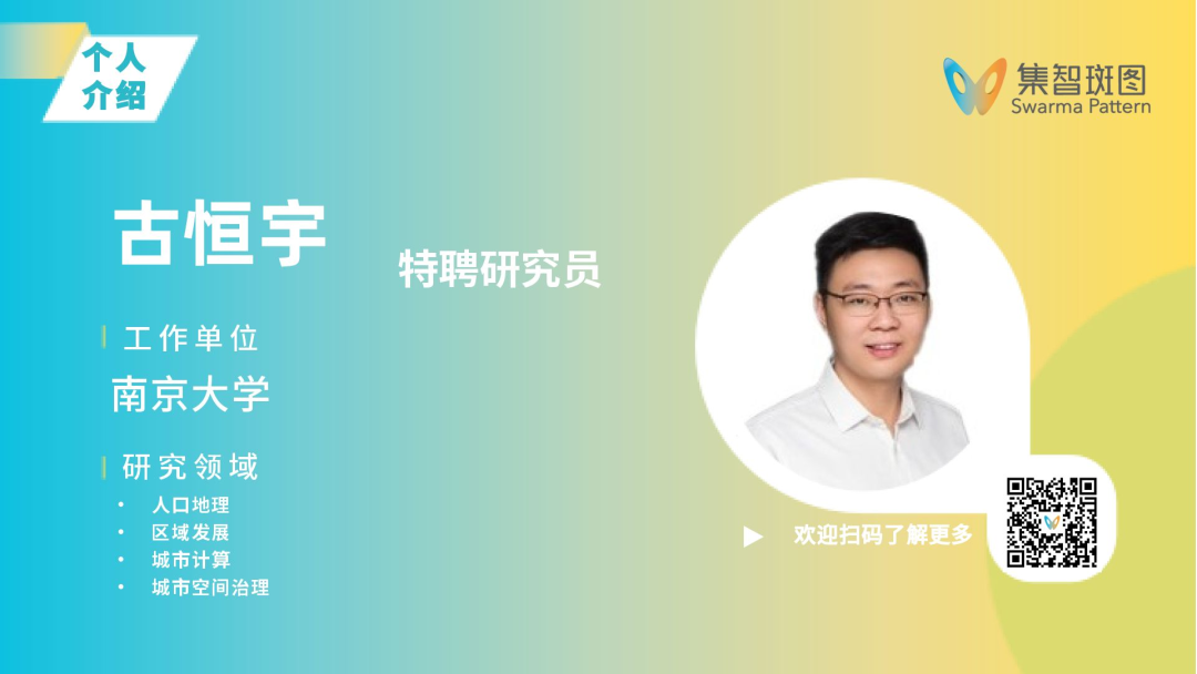 古恒宇,南京大学地理与海洋科学学院助理教授,特聘研究员,博士生导师。北京大学经济学博士,芝加哥大学公派联合培养博士,曾任香港中文大学博士后研究员/副研究员,主要研究方向为人口地理与区域发展、城市计算与城市空间治理。闵超,南京大学准聘副教授,博士生导师。入选中国科协青年人才托举工程。主持国家级、省部级与企业课题十余项。发表SSCI、CSSCI核心期刊论文50余篇,向科技部新一代人工智能办公室、国家自科基金委政策局、中央网信办、教育部等提交内参、调研报告等多份。担任SSCI期刊等中外核心期刊编委和数十家权威期刊审稿专家。主要研究方向向为科技评价与创新政策、应用数据科学、科技大数据挖掘、复杂网络和科学学。孙烨,东南大学副研究员。博士毕业于伦敦玛丽女王大学,曾担任伦敦大学学院Research Fellow,研究方向为科学学、复杂网络、计算社会科学和数据科学。目前的研究兴趣主要是基于大量的科学文献,基金和专利数据,量化分析不同学科,研究机构以及研究人员之间的知识流动和创新,刻画科学家的跨学科研究模式及行为特征,其工作发表于PNAS, Communications Physics, Journal of The Royal Society Interface 等国际期刊。