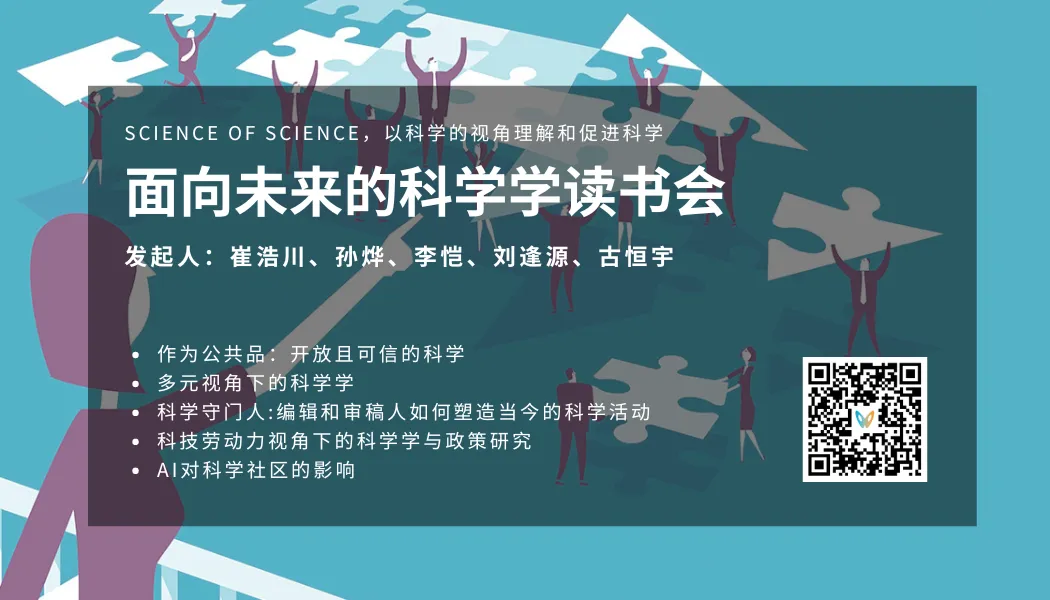 科学是研究实践、是理性精神,也是一个由学者、文献、科研项目、科学思想与灵感等一起构成的自组织、自生长的复杂系统。科学学这门学科,旨在深入理解科学研究的种种因素并推动科学发展。科学的迅猛发展在积累科学知识的同时,也遭遇诸多社会、伦理、政策问题:开放科学的范式如何影响科学研究的实践?阶层、性别、种族、国家等视角如何揭示科学不平等的起源?期刊编辑和审稿人如何塑造当今的科学活动?科学人口结构、人才激励、科技人才流动如何影响科学发展?AI大模型如何重塑科学研究的各个环节?为了思考和回应科学的多元化挑战、科学开放性面临的危机,以及新兴技术对科学的冲击,集智俱乐部联合美国匹兹堡大学博士后崔浩川、东南大学副研究员孙烨、田纳西大学信息学院助理教授李恺、纽约大学阿布扎比分校博士研究生刘逢源、南京大学地理与海洋科学学院研究员古恒宇,共同发起「面向未来的科学学读书会」,这是继「复杂系统下的科学学读书会」之后的新一季科学学读书会。读书会从2024年8月25日开始,每周六晚19:00-21:00,持续时间预计8-10周。欢迎感兴趣的朋友报名参与!点击“阅读原文”,报名读书会