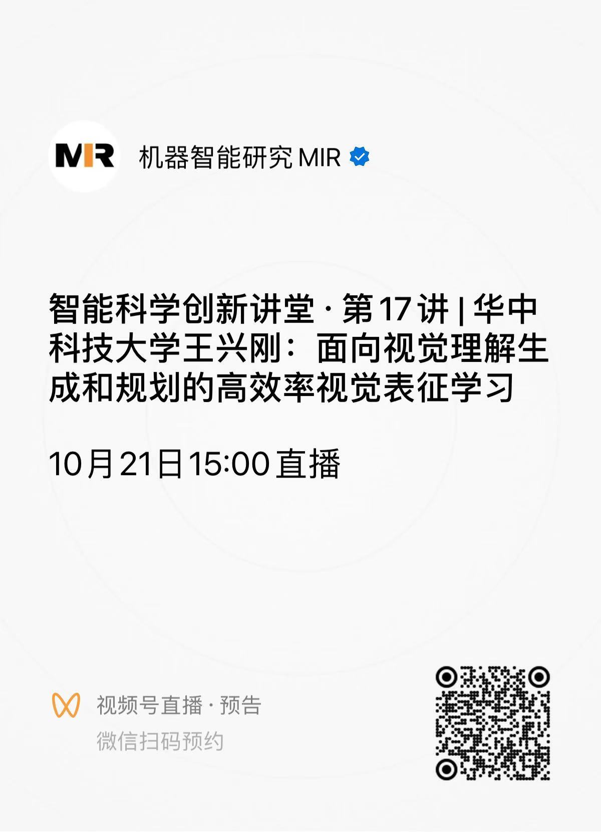 直播通道③:机器智能研究MIR 视频号