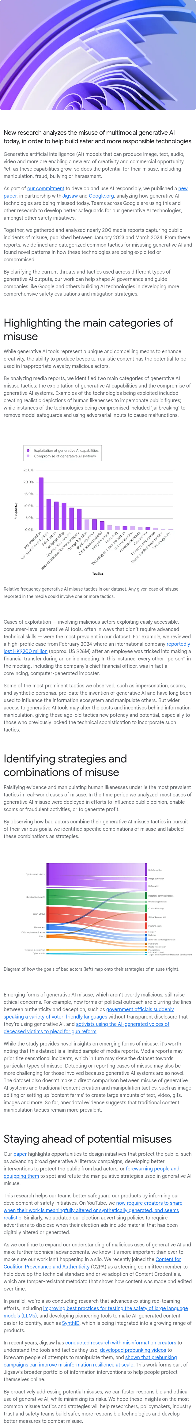 新的研究分析了当前多模态生成AI的误用情况,旨在帮助构建更安全、负责任的技术。生成式AI模型能够生产图像、文本、音频、视频等,开启了创意和商业的新时代。然而,随着这些能力的增长,其被用于操纵、欺诈、欺凌或骚扰等不当用途的风险也在增加。谷歌与Jigsaw和Google.org合作,发布了一篇论文,分析了当前生成AI技术的误用情况。研究团队收集并分析了近200份媒体报告,涵盖了2023年1月至2024年3月期间公开的误用事件,定义并分类了常见的误用手段。谷歌正利用这些研究成果开发更有效的保护措施,以提高生成AI技术的安全性。