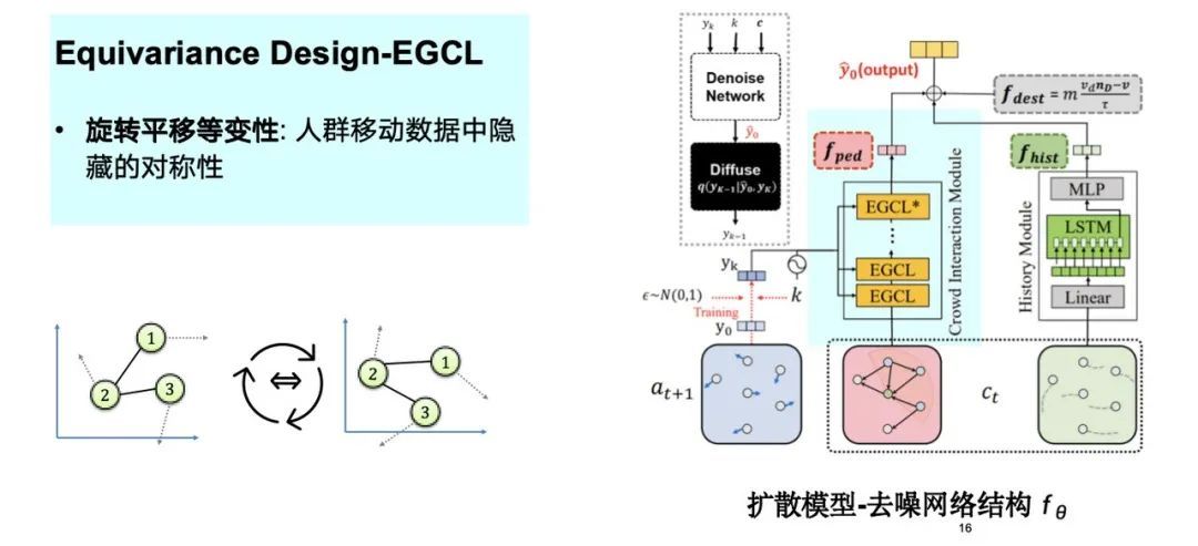 如下图所示,我们考虑了人群移动数据中隐藏的对称性——旋转平移等变性,将其融入到模型设计过程中,这种归纳偏差 (Inductive Bias) 的注入有助于优化整个模拟过程。