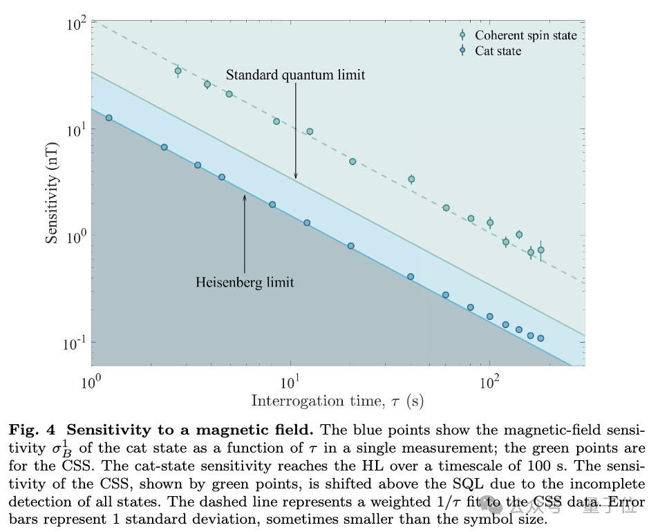 更重要的是,这个展现出接近海森堡极限磁场测量灵敏度的猫态,不仅可用于高精度磁场测量,还可应用于寻找永久电偶极矩、检验洛伦兹不变性,以及探索超出标准模型的新物理现象,为量子精密测量领域开辟了新的研究方向。