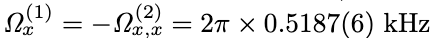 通过精确控制控制激光的频率和强度(80 mW/cm²),实验中测得的拉比频率为: