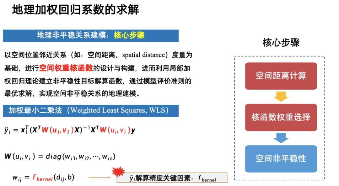 如何计算地理加权回归系数?其核心包括 2 点,第一是要计算一个准确的空间距离,第二是要在众多核函数中选择一个最准的拟合函数。
