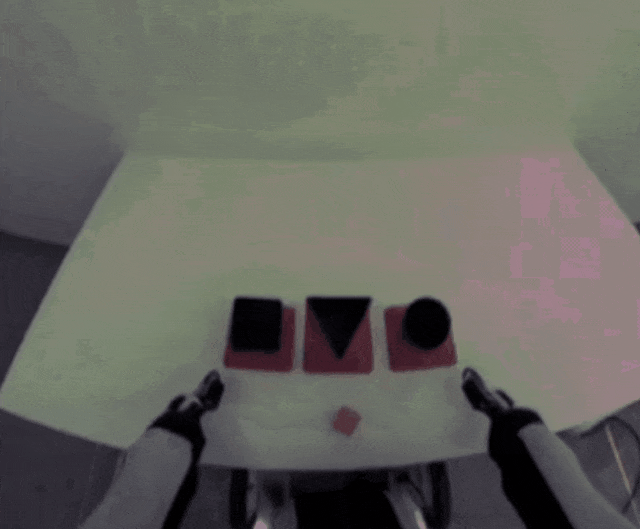 比如下面这个例子,为模型提供相同的初始帧和三组不同的抓取操作。在每种情况下,被抓取的箱子都会根据抓手的运动被抬起和移动,而其他箱子则不受干扰。