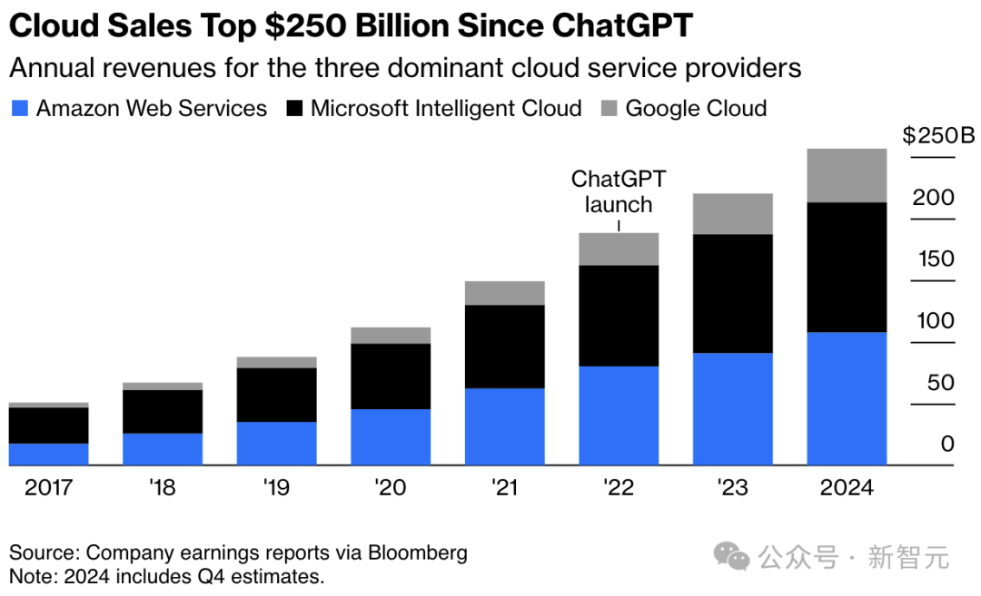 另外,世界三大主要云服务提供商微软、亚马逊、谷歌的云收入也在加速增长,突破了2500亿美金。