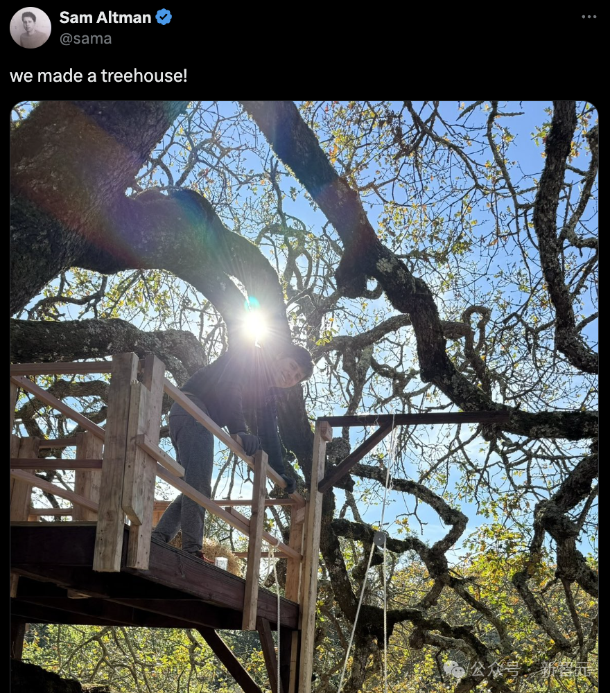 Altman却发文表示,「做了一个树屋」,完全没有透露半点即将发布新模型的消息。