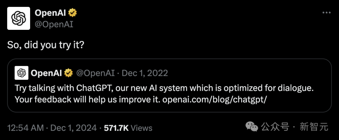 OpenAI官推转发了两年前的帖子,并附上了「所以,你试过了吗」?