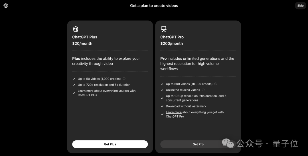 具体来看,Plus会员每月最多可生成50支视频,720p分辨率最多生成5秒,480p分辨率可以生成10s。