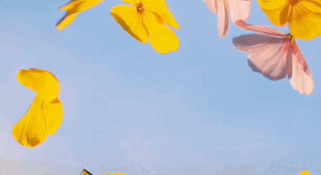 经过Sora这个“大裁缝”的缝合之后,画面中下落的物体从雪花逐渐变成彩色的花瓣,背景色也从冷变暖。