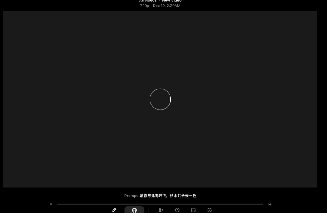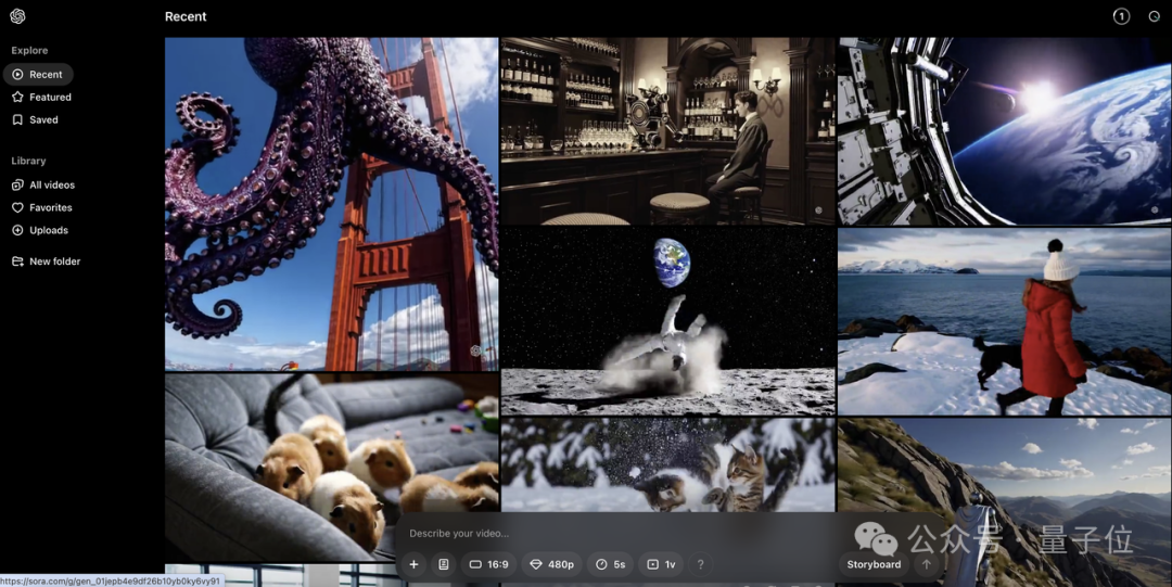 进入Sora的界面,就会看到一些已经生成好的案例,而界面下方就是提示词输入框了。