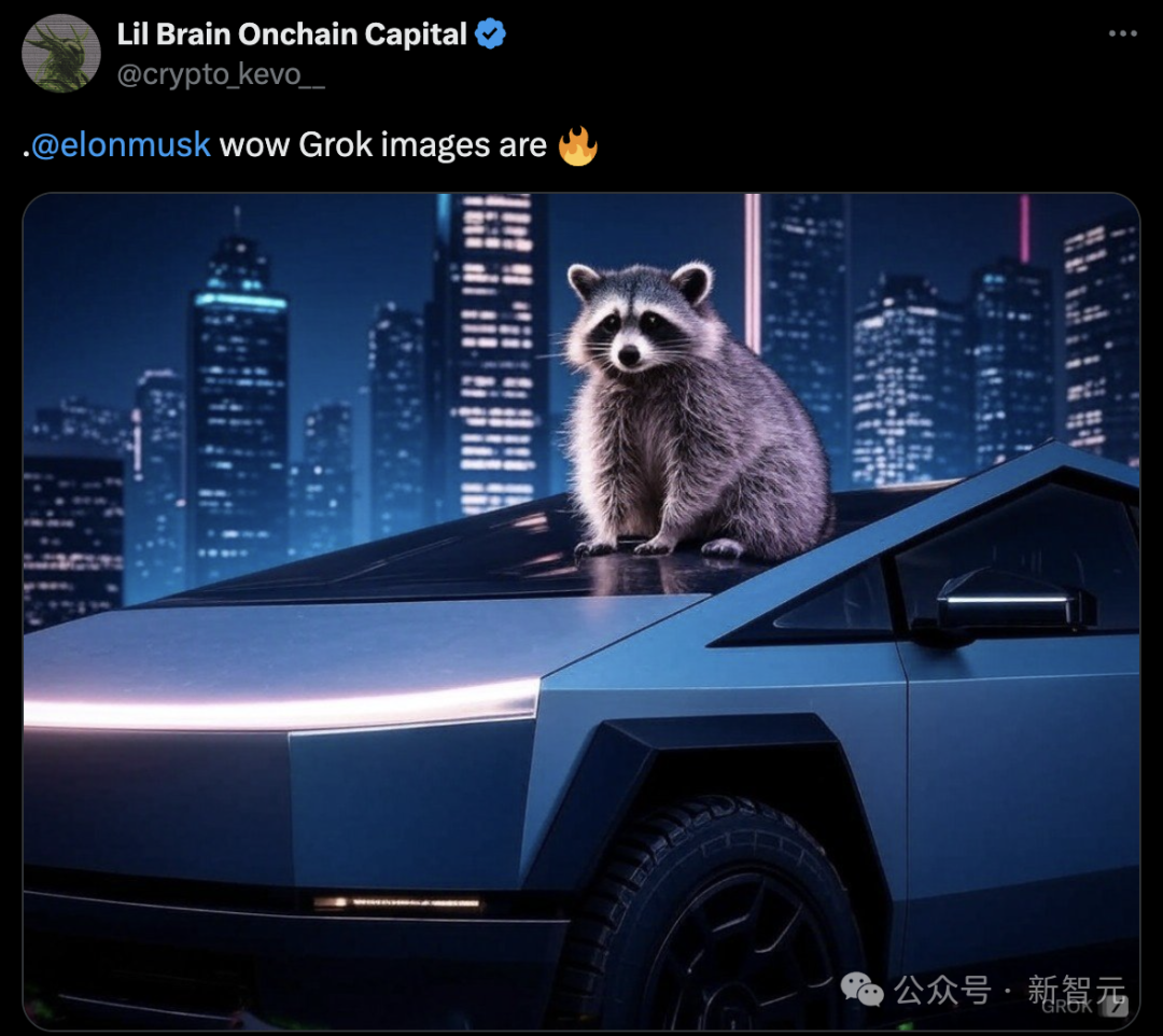 还有坐在Cybertruck上的小浣熊。