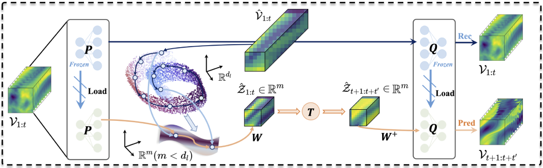 在数学中,描述 Banach 空间中映射的算子具有无限维的特性,因此,算子的维度表示成为算子学习建模物理动力演化的关键问题。以大气模型为例,在数值求解天气模型时连续的大气控制方程被精细的网格离散成数以万计个格点(若空间分辨率为10km级),则这一离散的大气系统的自由度就趋于1011,而这一自由度将随着分辨率的提高指数级增大。我们是否能够准确计算该系统的最优表示维度,并以此为基础设计神经网络结构来对其进行表征?近日发表于KDD 2024 的 Neural Manifold Operators(NMO)模型通过计算物理系统的内在维度,来实现对物理系统演化的最优表征。