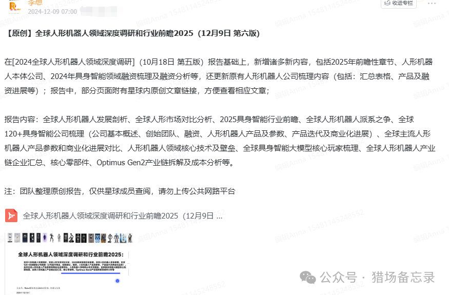 小编及团队于12月9日,整理原创报告【全球人形机器人领域深度调研和行业前瞻2025】,报告又可称为【2024全球人形机器人领域深度调研报告】第六版(共195页)