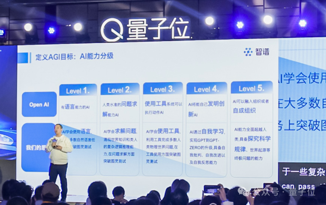 他表示,OpenAI发布了对AGI目标能力的分级,智谱也有自己的理解。