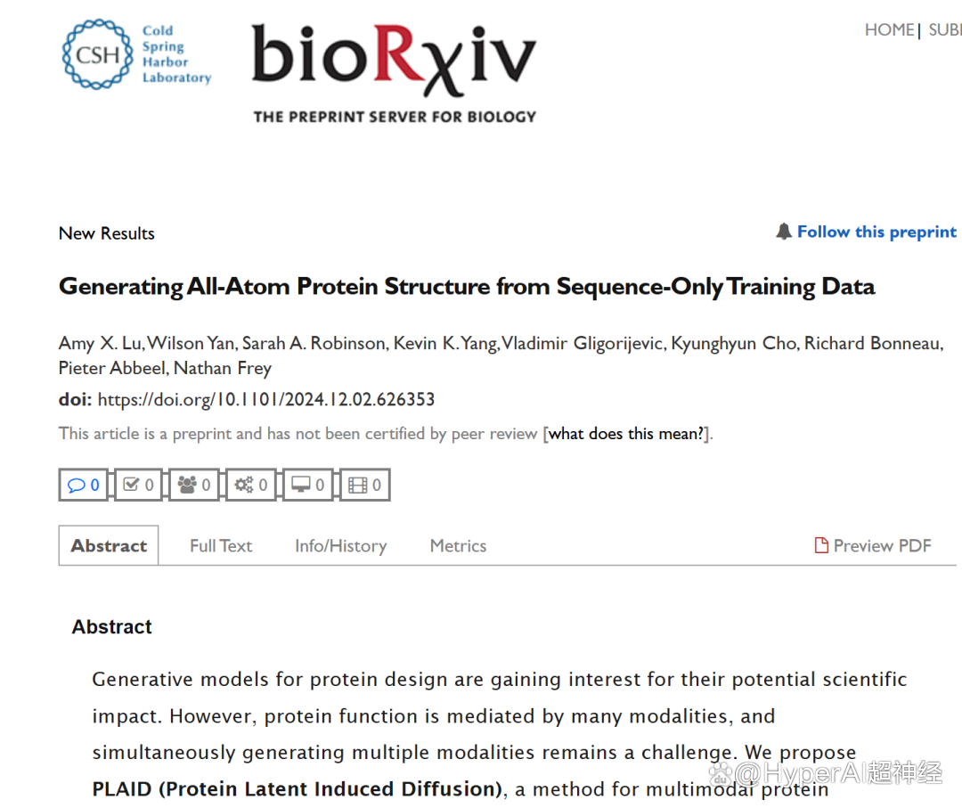相关研究以「Generating All-Atom Protein Structure from Sequence-Only Training Data」为题,已提交至顶会 ICLR 2025。「AI 教父」杨立昆也在社交平台上转发了该成果。