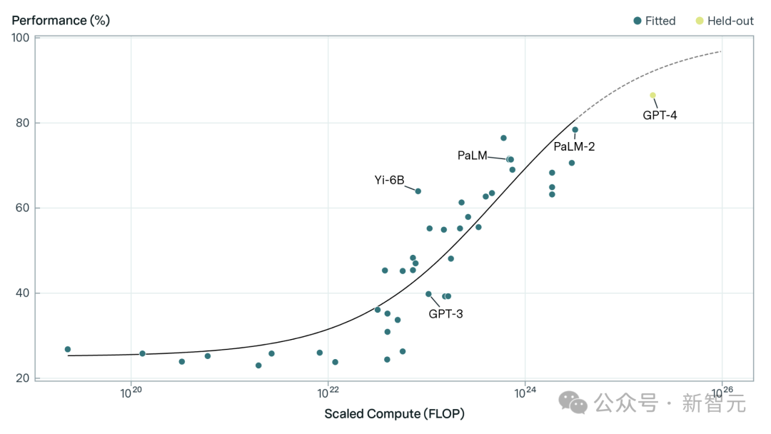这意味着我们需要更多指数级的数据或推理时间才能继续看到性能提升。