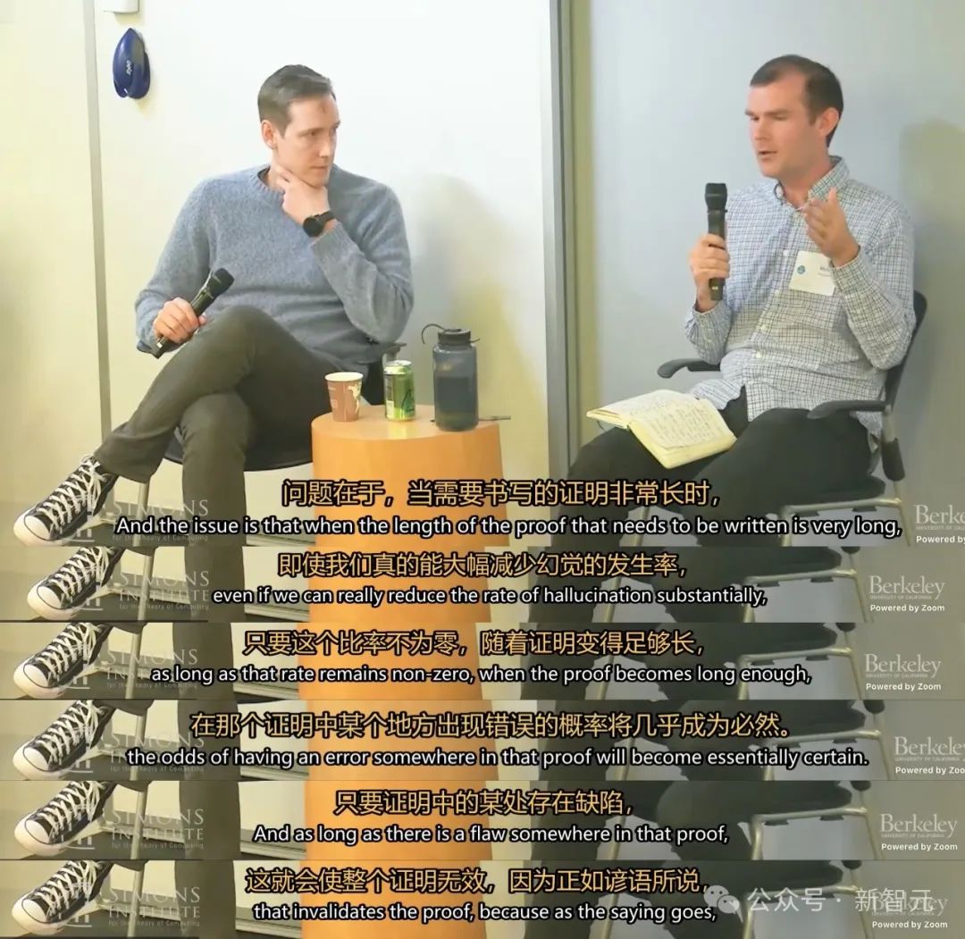 「问题在于,当需要撰写的证明很长时,即使我们能大幅降低幻觉出现的概率,但只要这个概率不为零,当证明足够长时,证明中出现错误的可能性就几乎是必然的。而且只要证明中存在一处缺陷,这个证明就无效了」。