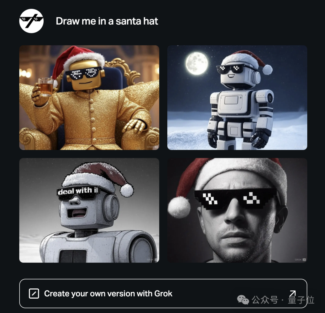 此外,用户如果在𝕏上看到其他人发的“draw me”帖子,点击下方“Create your version with Grok”按钮也能实现自动跳转生成。