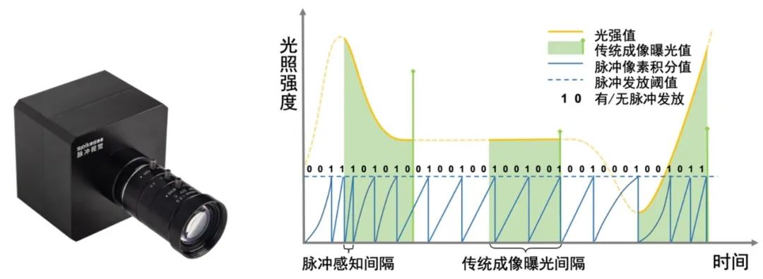 图3. 左:脉冲相机[5]|右:脉冲相机成像原理示意图[2]
