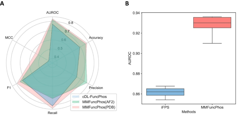 图2. MMFuncPhos与两种代表性功能磷酸化位点预测方法的比较结果。