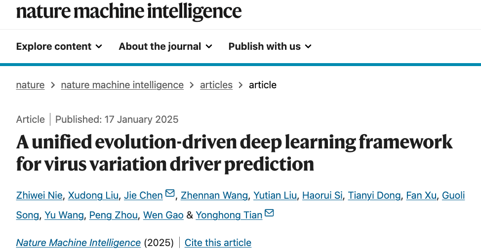 研究以「A unified evolution-driven deep learning framework for virus variation driver prediction」为题于 2025 年 1 月 17 日发表在《Nature Machine Intelligence》上。