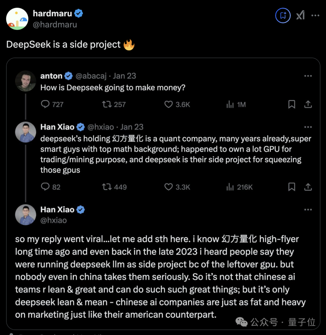 在2023年末我就听说他们在做DeepSeek。即使在当时的中国,还没有人把他们当回事。