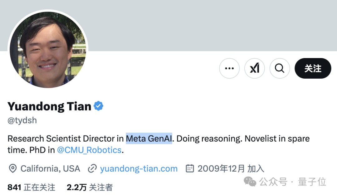 虽然还没有大张旗鼓的宣传,但目前田渊栋的X简介已经更新。