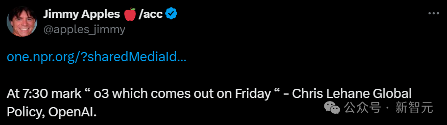 【新智元导读】刚刚,OpenAI首席全球事务官透露,o3将于本周五正式上线!此外,为了保持美国AI的领先地位,OpenAI计划将最先进的AI模型部署到美国家实验室;还计划融资400亿美元,全力押注AI的基础设施:芯片、数据、人才和能源等「算力」基础。