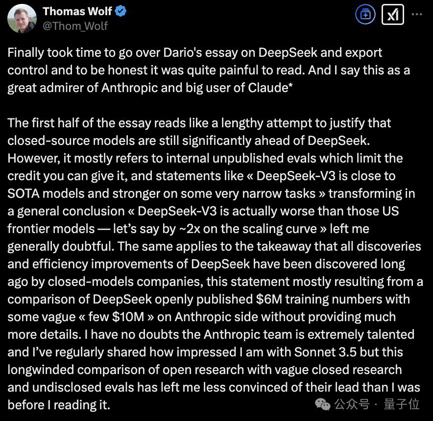 而针对Anthropic等面对DeepSeek竞争的不敞亮反应,也有越来越多反对的声音正在出现。