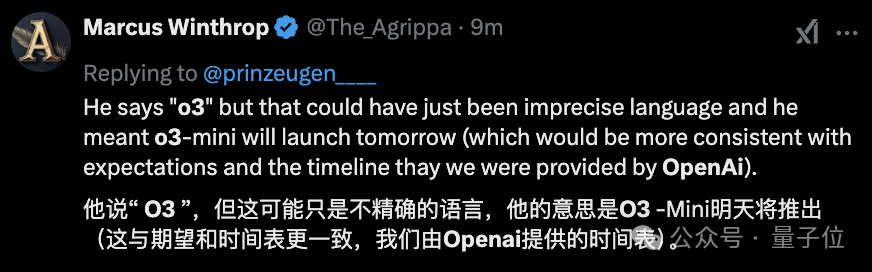 不过也有网友指出,他所说的“o3”还是指o3-mini,对于这一模型的上线,奥特曼本人已经预告已久。
