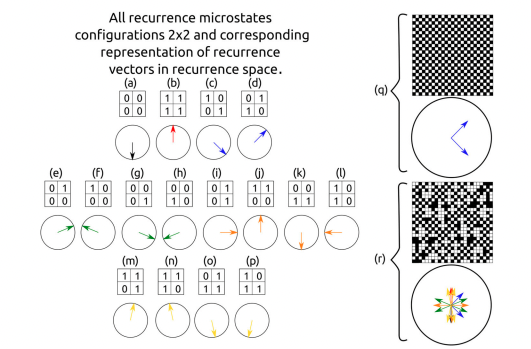 递归微观态可用于分析随机和确定性时间序列在平稳状态下的许多属性,包括随机信号的相关性水平。Prado等人[3]展示了如何使用递归微观态统计,来检测人工插入的数据(不属于原始静止信号的数据)。研究者们在文章中验证了该方法的灵敏性,并将文中的分析示例应用于 logistic 映射和洛伦兹方程中,最后在通过数值模拟生成的动力学时间序列数据和人类语音数据上进行了实例分析。
