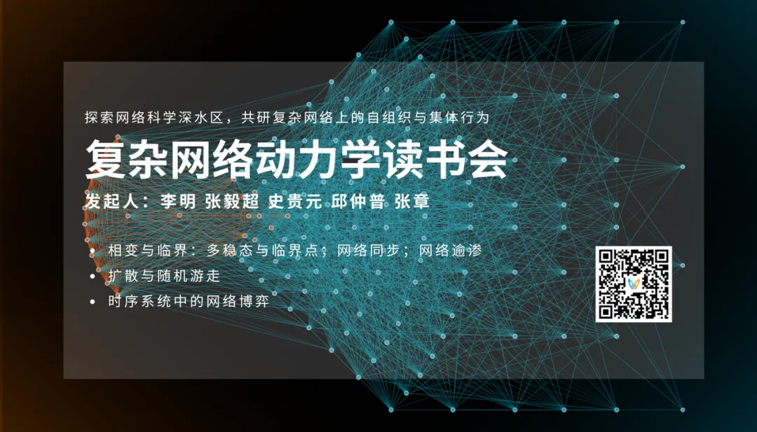 如今,统计物理与复杂网络的交叉研究仍在不断推进。在此背景下,集智俱乐部社区学者李明、张毅超、史贵元、邱仲普和张章共同发起了「复杂网络动力学」读书会,来研究复杂网络上的自组织和集体行为,从扩散、相变与临界、网络博弈不同视角,进行深度研讨。读书会将于3月7日正式启动,欢迎领域学者参与共学共研。