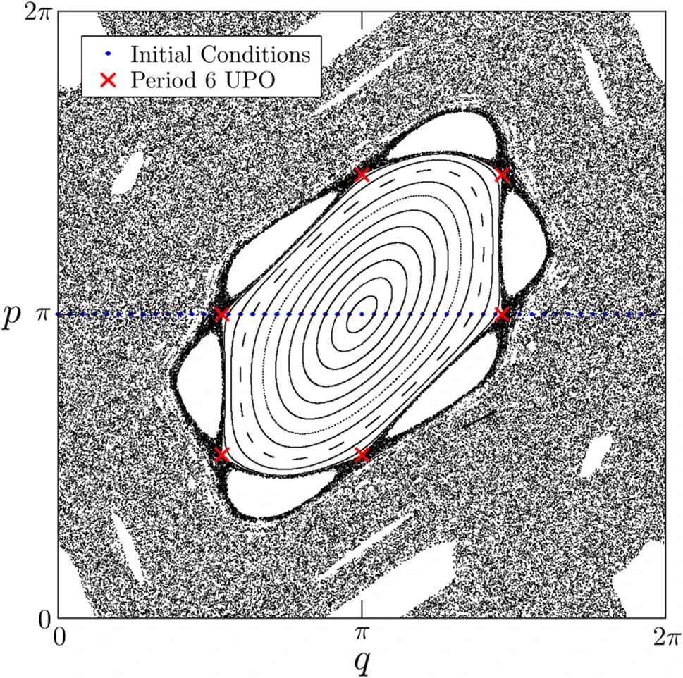 Sliva等人[5]研究了 Chirikov-Taylor 标准映射中存在的亚扩散行为。研究表明,该系统在粘性影响下的轨迹演化可以被描述为一个亚扩散过程。他们开发的程序同样适用于其他哈密顿系统,也适用于研究复杂网络上的传输特性。
